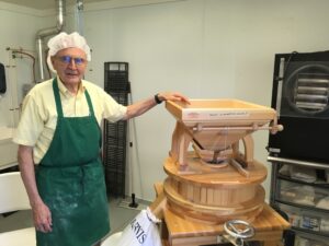 About that time, I became friends with another local businessman, Dave Cobia, who owned Tree Street Grains. His mission was to increase nutrition by using whole grains and milling them fresh. He created a 9-grain 100% whole grain flour that was gluten free and worked well! I wanted his secret. I started buying his flour and making ancient grain muffin mixes and later offered to buy his company. It took him several years and turning 83 before I finally convinced him that he should sell to me. Sadly, Dave passed away in December of 2023, but his legacy of whole grains lives on in our products.